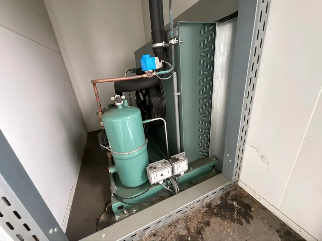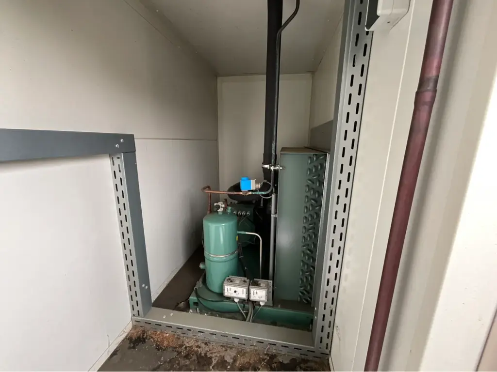 Livraison gratuiteCadre en acier ; épaisseur de paroi de la chambre froide 120 mm ; dimensions intérieures utilisables 4450x2750x2250 mm ; double porte extérieure de chambre froide; réparer les serrures de la deuxième porte ; panneau de configuration; évaporateur et compresseur de réfrigération ; 400 volts – 32 ampères ; grilles de ventilation en acier inoxydable ; verrous tournants ; état de fonctionnement.