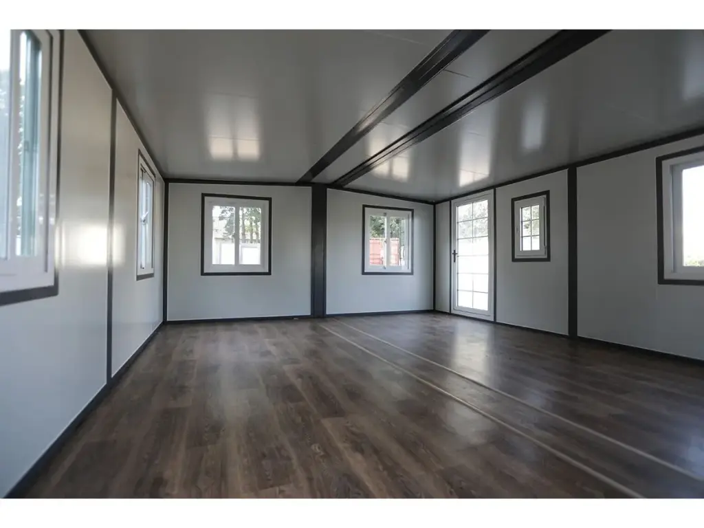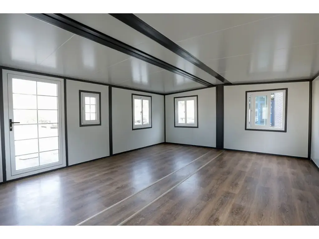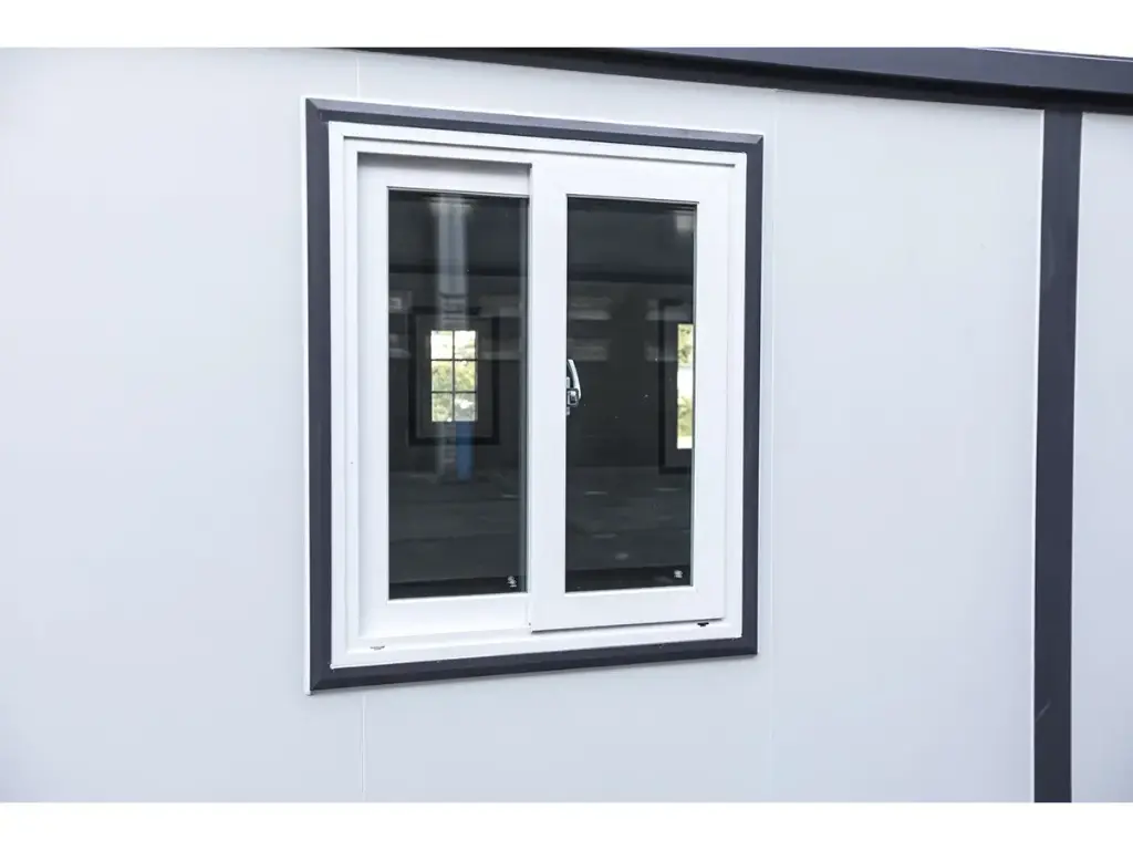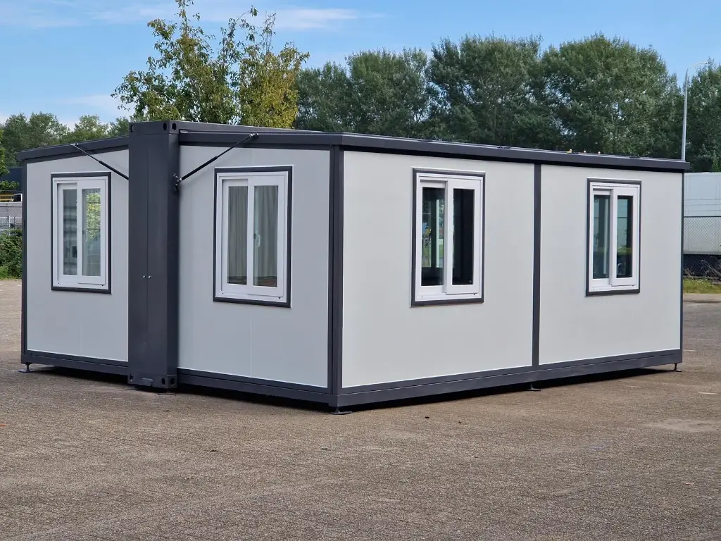 Livraison gratuiteFournir; cadres en plastique, double vitrage, murs et toit isolés, gouttière de drainage, sol en vinyle, verrouillable avec clé, 2 x treuil à main pour abaisser le sol, dimensions pliées et pour le transport 5890 x 720 x 2550 mm, pieds réglables, 2 roues à roulettes à l’arrière, les 8 fenêtres peuvent être ouvertes, sont équipées d’une moustiquaire, espace de 28 m2, inutilisé