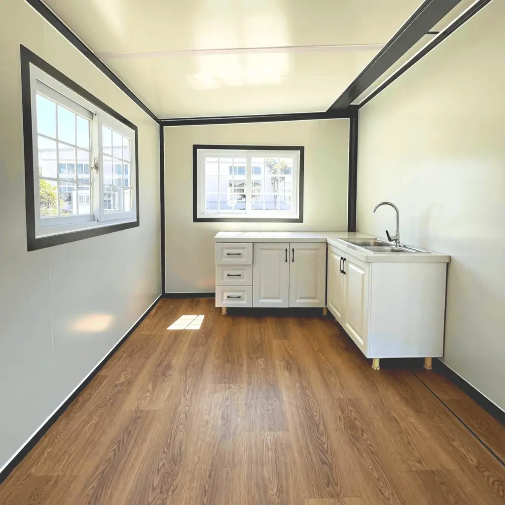 - [Équipements essentiels à portée de main] Profitez de la commodité des équipements essentiels à portée de main. Notre maison préfabriquée est composée d’une salle de bain, d’une douche et de placards de cuisine intégrés pour profiter du confort de chez-vous où que vous alliez. L’utilisation optimale de l’espace garantit que chaque mètre carré est soigneusement conçu sans compromettre le style.