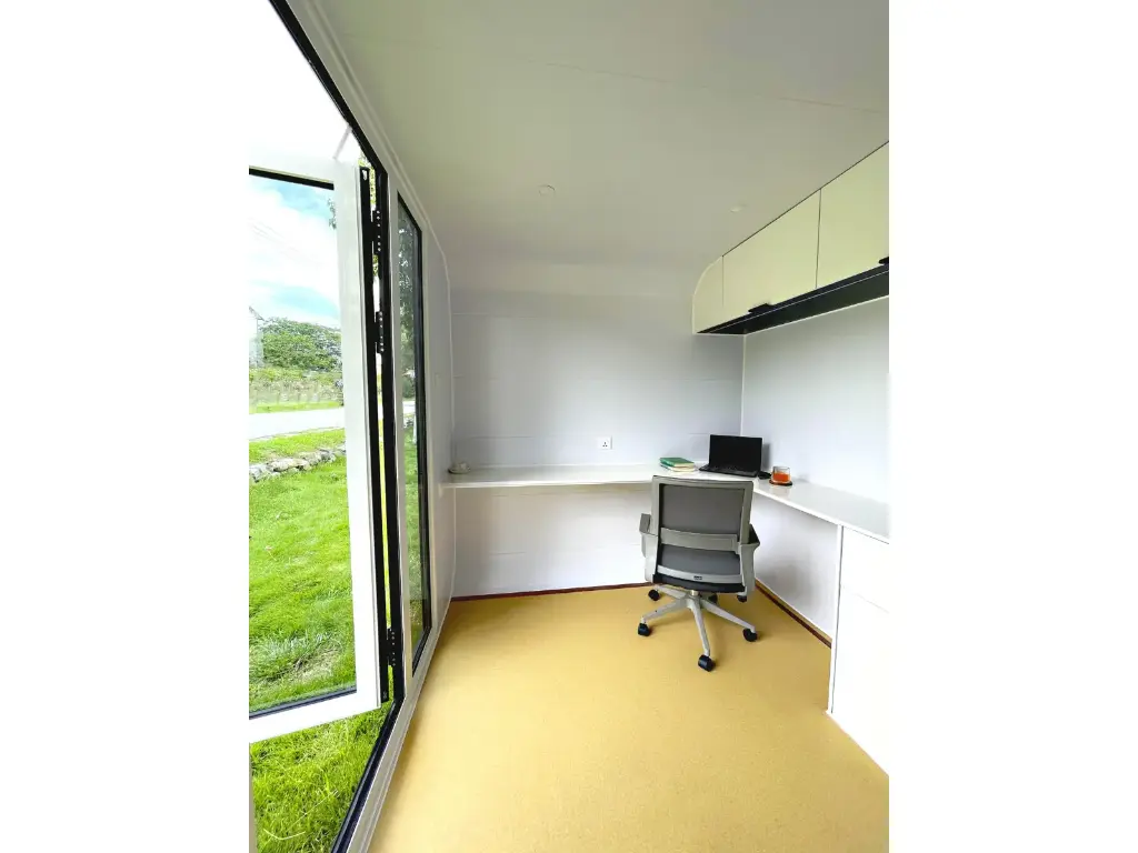 Murs et toiture isolés ; huisseries en aluminium avec double vitrage à contrôle solaire ; verrouillable à l’aide d’une clé et d’un cylindre à bouton ; fenêtre à guillotine ; dimensions de transport 3950x2300x2450 mm (LxlxH) ; lever les yeux ; cadre en dessous ; équipé de trous de cuillère et de pieds réglables ; inutilisé; Intérieur : sanitaire avec douche ; toilette; lavabo avec mitigeur et meubles bas ; miroir avec éclairage à 3 choix ; Ventilateur; Prises murales 220 volts avec connexion USB ; Plafonnier à LED ; 2 pièces de fenêtres à guillotine avec stores et moustiquaire ; rideau; boîte de lit avec espace de rangement ; RCD; rangement dans les placards ; (à l’exclusion des accessoires) Matériaux externes : Panneau composite en aluminium ; Feuille d’aluminium monocouche de fluorocarbone blanc ; double couche légère haute résistance à la compression Matériaux internes ; Plaque de bouton plate en bois-plastique ; plaque écologique de qualité HE ; inutilisé
