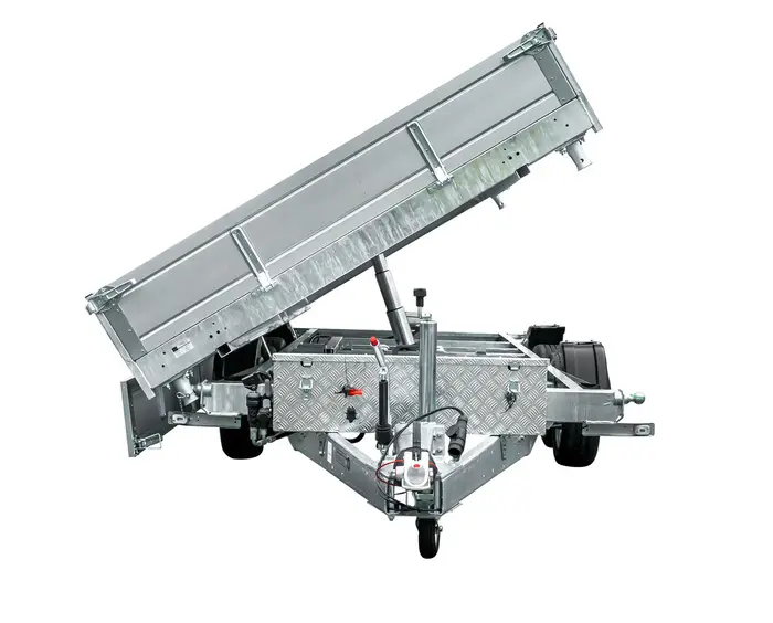 La benne dispose d’un système de basculement électrique étendu, qui vous permet d’utiliser la remorque pour de nombreux types de travaux. Grâce aux côtés basculants et basculants à 4 voies, vous aurez à tout moment un accès facile aux charges transportées et vous pourrez facilement décharger les marchandises en les basculant.