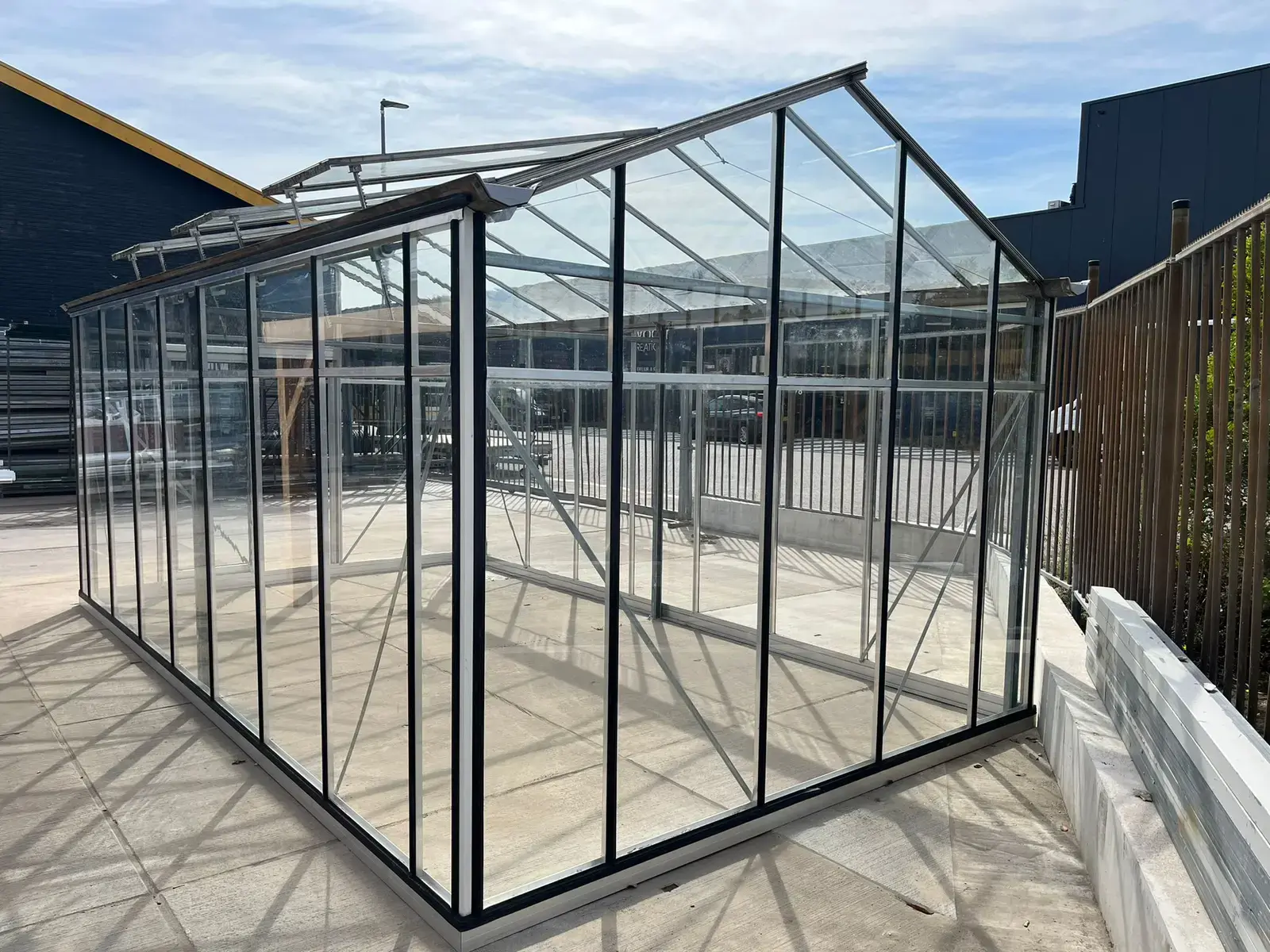 Livraison gratuite3 évents et ceux-ci s’ouvrent manuellement en même temps ; 1 Porte coulissante avec vélos neufs solides Garantie de 5 ans ; Le verre est de 2ème main et fait sur mesure pour les terrasses et les façades ; Un profil inférieur lourd est utilisé comme poutre de fondation ; La serre est également prétraitée de manière à ce que vous puissiez la construire vous-même ; Un nouveau revêtement en caoutchouc noir est utilisé pour les façades ; Serre de loisirs complète avec matériaux de montage.