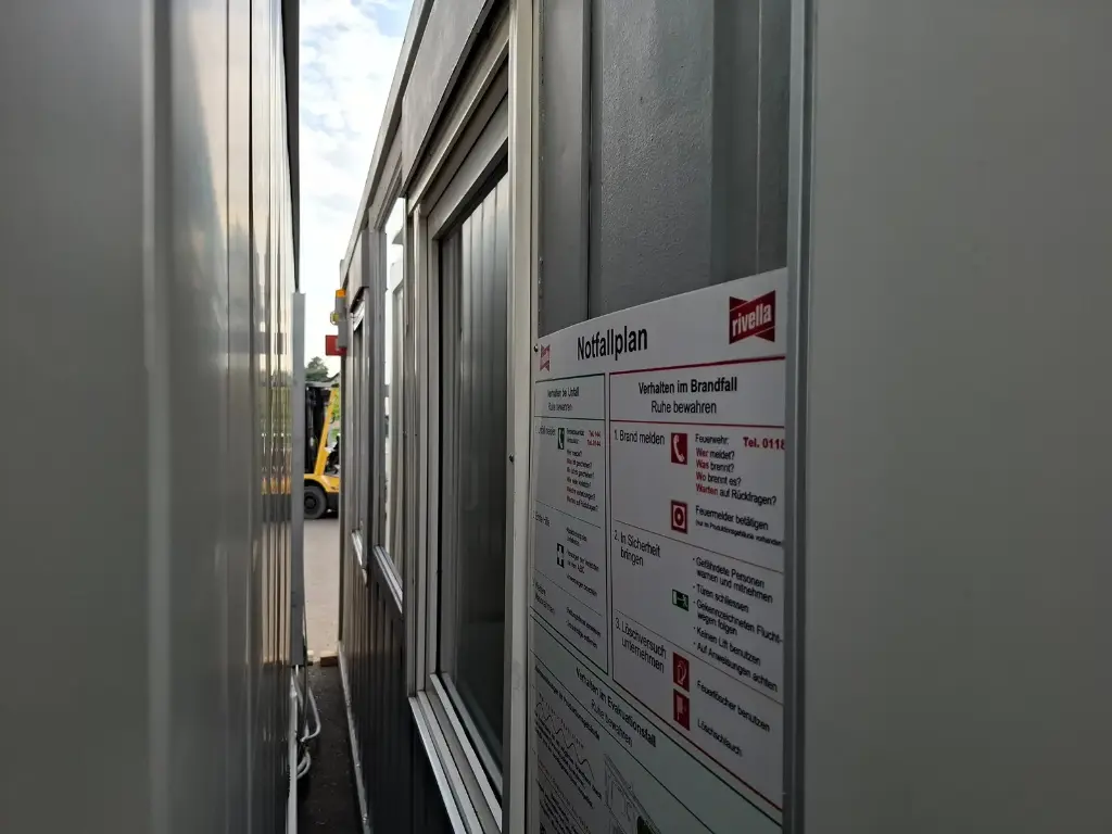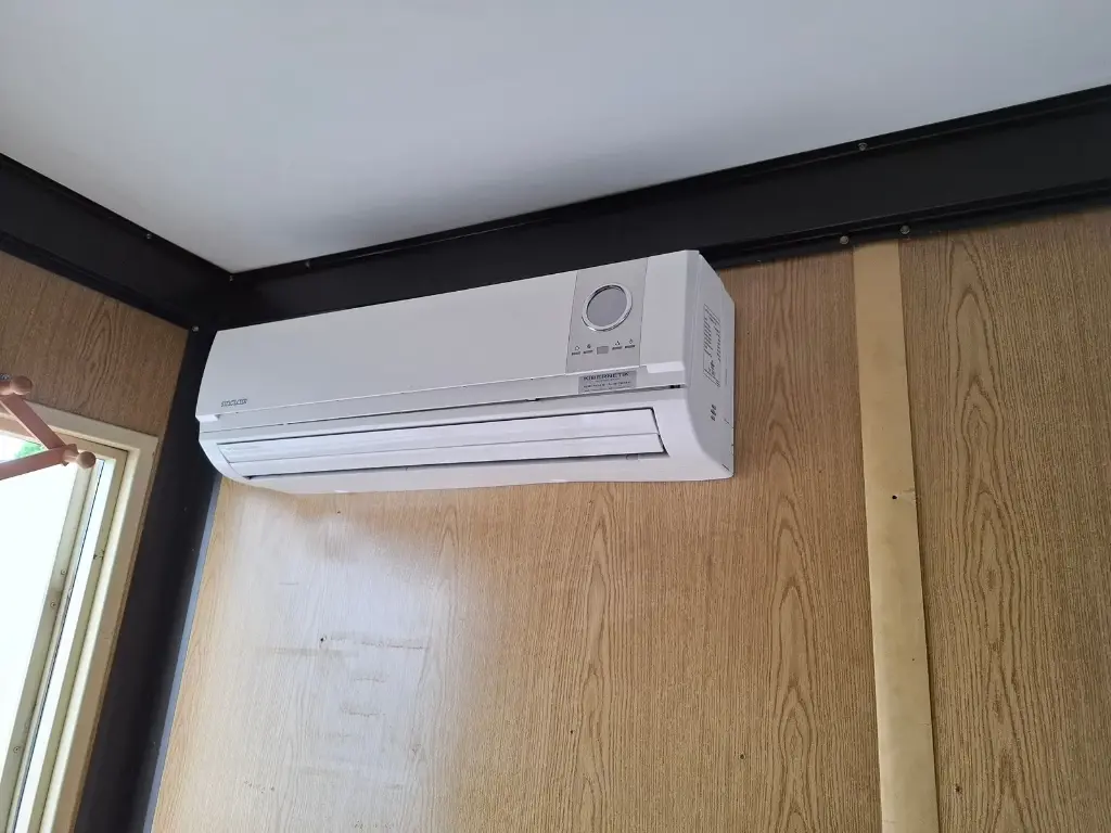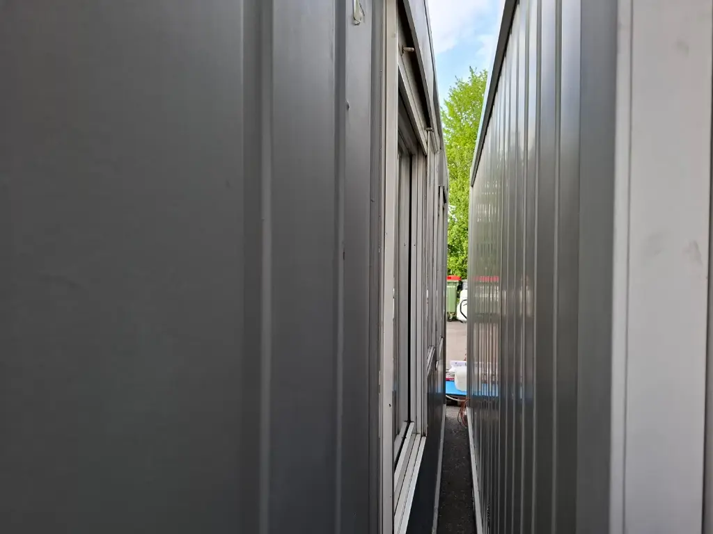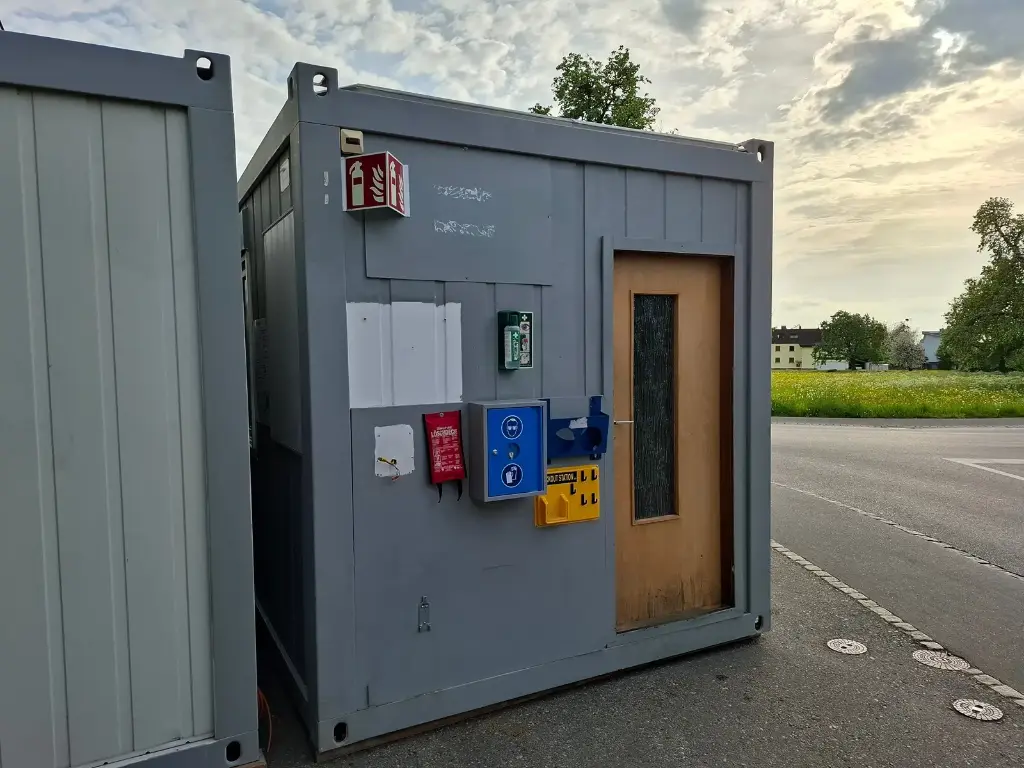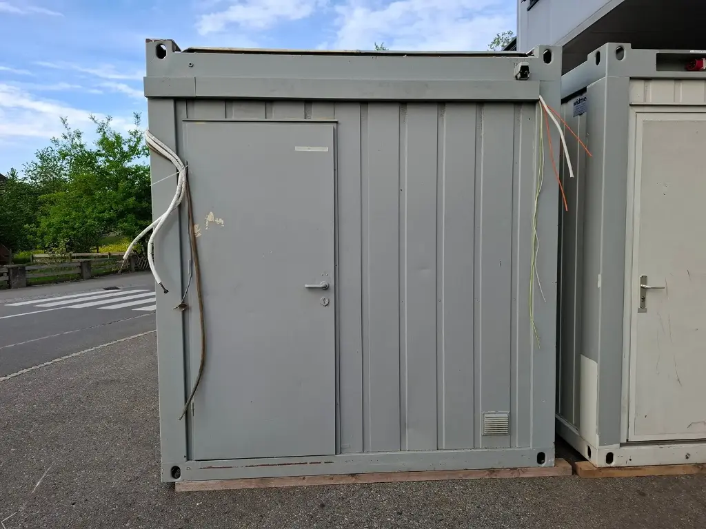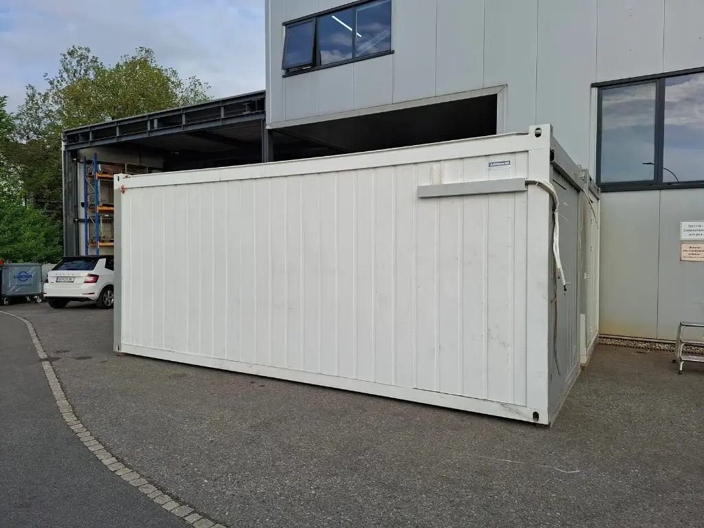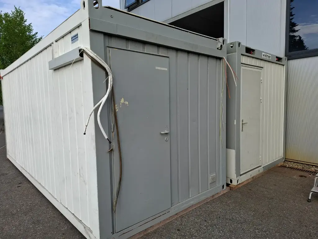 Conteneur de 20″ avec équipement de bureau. Deux fenêtres et deux portes chacune. Avec climatisation, éclairage + branchements